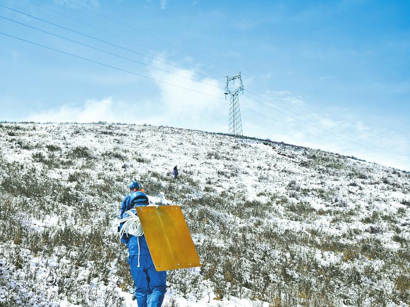 电力工人前往高海拔地带巡查输电线路。 国网阿坝供电公司供图