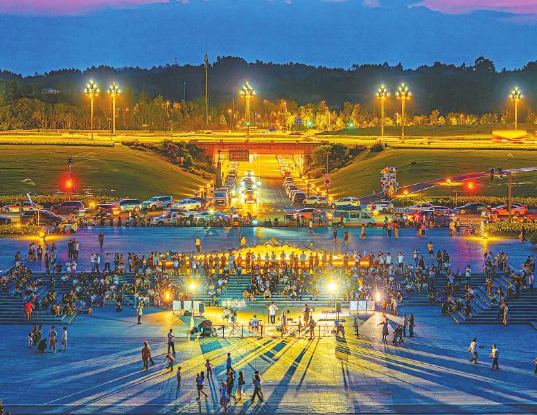 4月21日,成都市兴隆湖畔人气兴旺,不少市民围听歌手弹唱,丰富的夜间场景体现了成都夜间经济的活跃。蒋光丛 摄(C视觉)