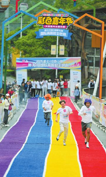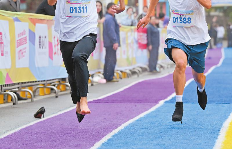 4月26日,“第10届国际高跟鞋彩色跑”活动在重庆市涪陵区美心红酒小镇举行,选手们穿着7厘米以上的高跟鞋参赛,共赴这场融合运动、时尚与旅游的趣味赛事。新华社记者 陈诚 摄