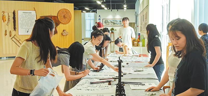 川台大学生体验东坡诗词书法艺术。 省委台办供图