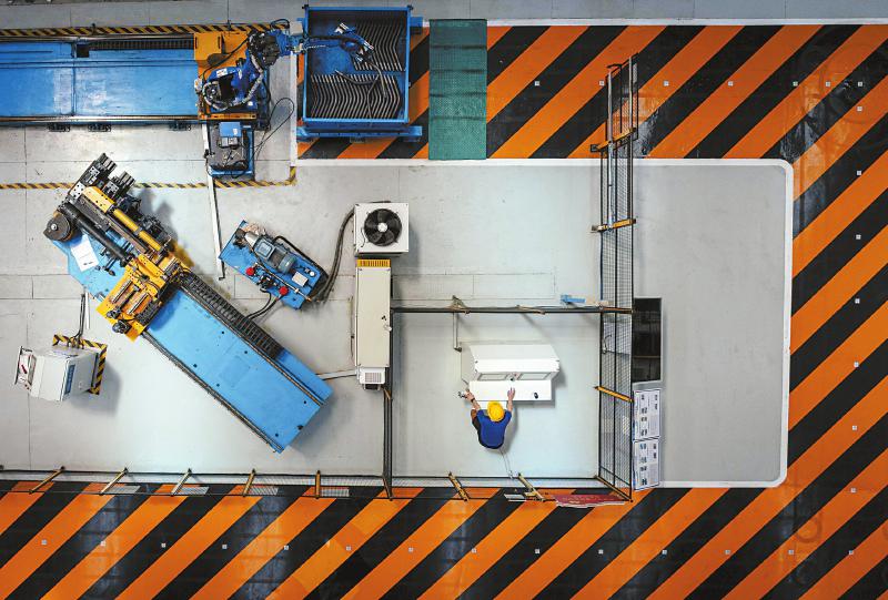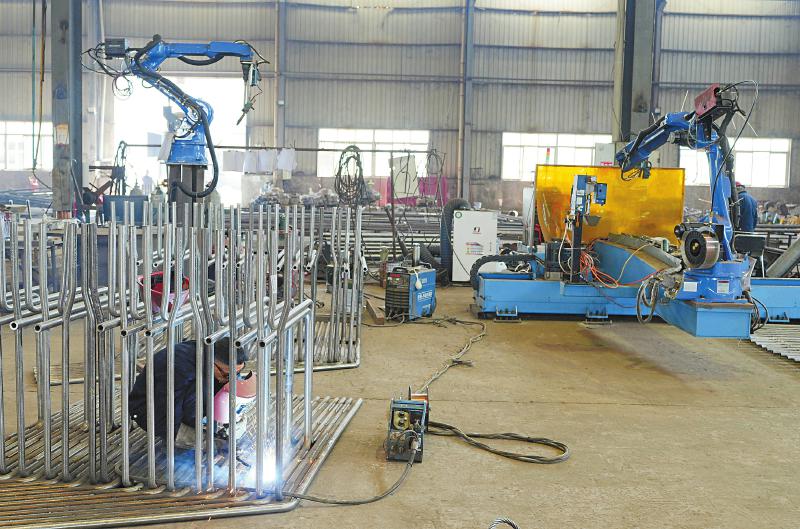 4月18日,东方锅炉自贡基地联箱数制·智联工厂,技术工人操作机械臂生产。