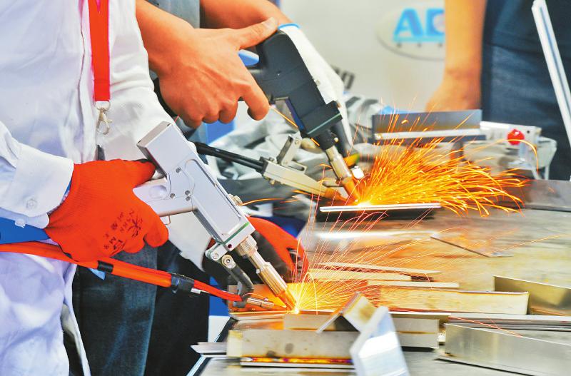 4月23日,成都易镕宜锢科技有限公司的工作人员在2025成都国际工业博览会展台上演示风冷一体式激光焊接机的操作。
