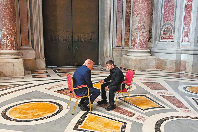 4月26日,美国总统特朗普与乌克兰总统泽连斯基在梵蒂冈圣彼得大教堂会面。 图源:美国有线电视新闻网 新华社发