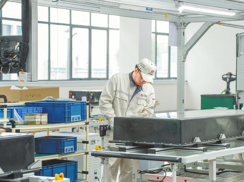 宜宾储能产业园,中车时代储能基地项目一期生产车间内,工人正在进行装配。宜宾观察 罗顺 摄