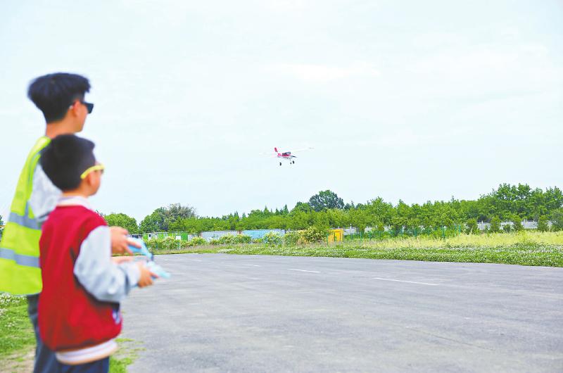 4月28日,成都高新区银都紫藤初中东区学校的700余名学生,走进青白江区弥牟镇朱家湾低空经济研学基地,开启了一场沉浸式低空科技探索之旅。通过理论课堂、实践操作和零距离接触直升机等环节,学生初步了解航空知识,领略低空经济的魅力。白桂斌 摄(C视觉)