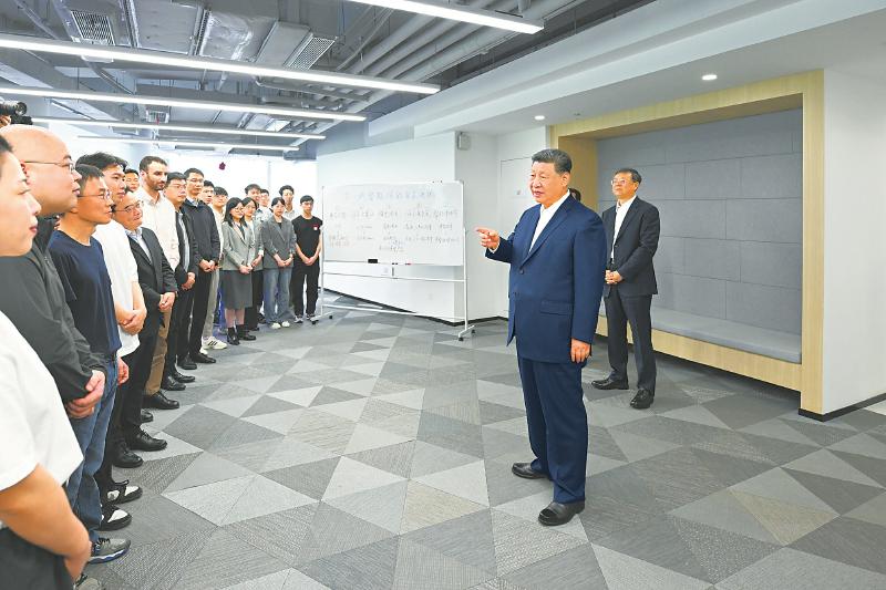 四月二十九日,中共中央总书记、国家主席、中央军委主席习近平在上海考察。这是习近平在位于徐汇区的上海“模速空间”大模型创新生态社区,同正在参加“下一代智能体的自主进化”主题沙龙的青年创新人才亲切交流。新华社记者 谢环驰 摄