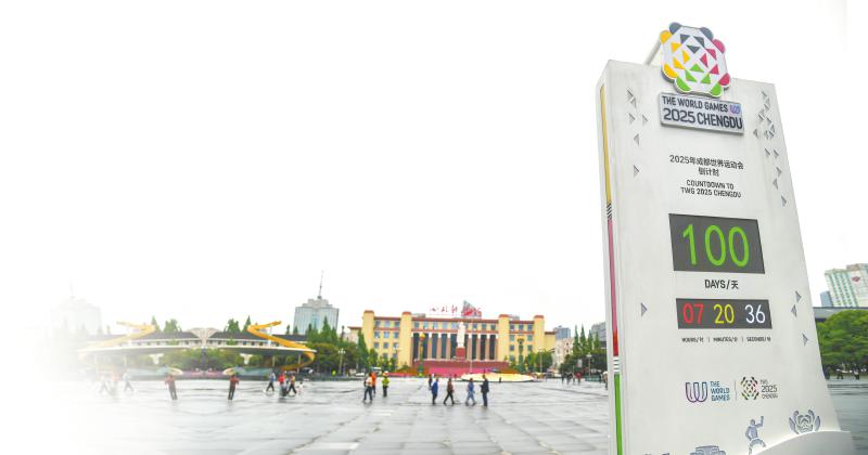 4月29日,在天府广场拍摄的成都世运会倒计时100天电子装置。 本版图片均据新华社