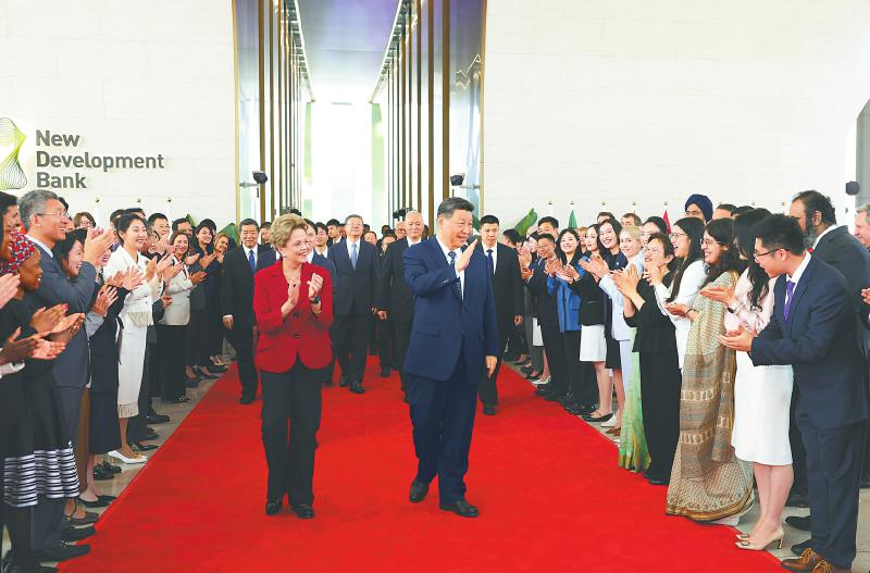 四月二十九日上午,国家主席习近平在上海访问金砖国家新开发银行,并会见新开发银行行长罗塞芙。新华社记者黄敬文摄