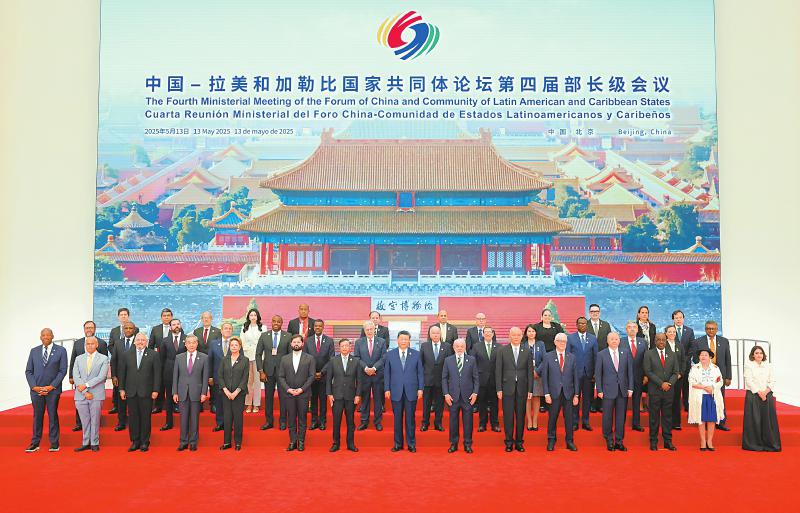 五月十三日上午,国家主席习近平在北京国家会议中心出席中国-拉美和加勒比国家共同体论坛第四届部长级会议开幕式并发表主旨讲话。这是习近平同与会嘉宾集体合影。新华社记者 丁海涛 摄
