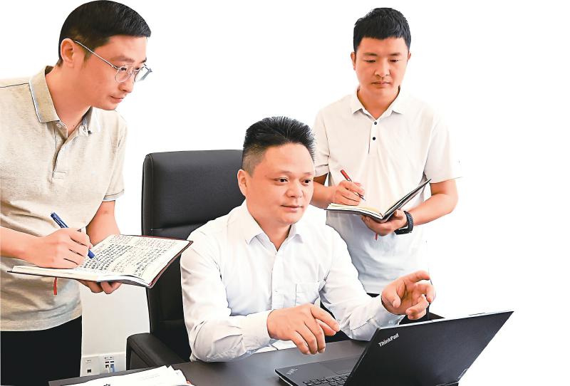 5月12日,张学丰(中)在与团队成员沟通。受访人供图