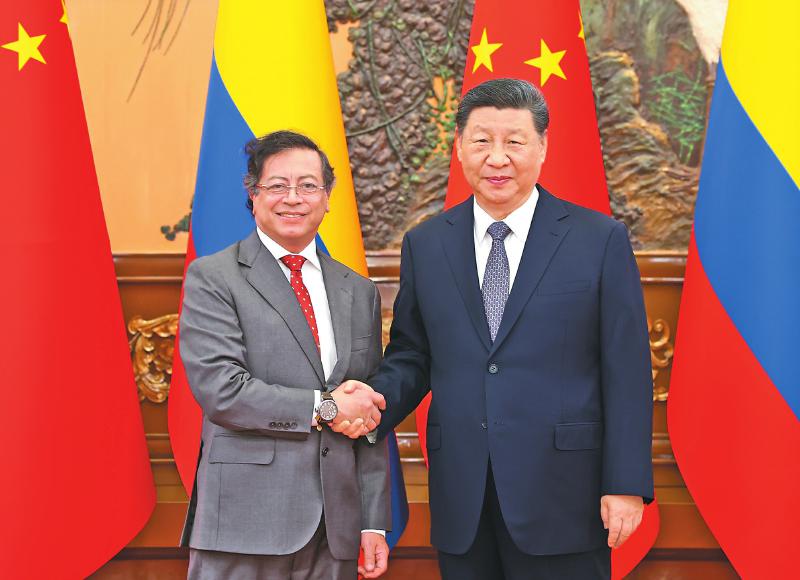 5月14日上午,国家主席习近平在北京人民大会堂会见来华出席中拉论坛第四届部长级会议的哥伦比亚总统佩特罗。 新华社记者 黄敬文 摄