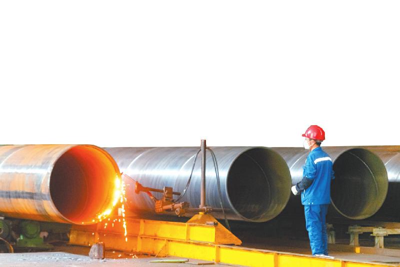 资阳石油钢管有限公司生产车间管端火花四溅。 张建 摄