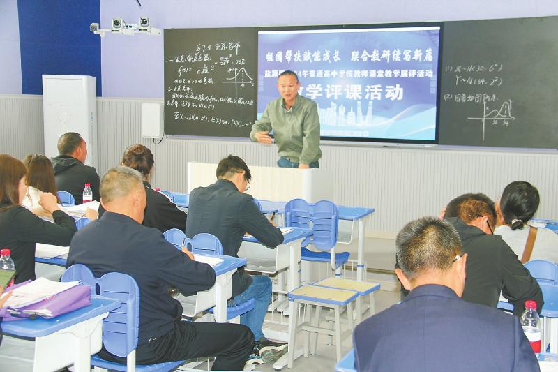 盐源县2024年普通高中学校教师课堂教学展评活动现场,王井平为教师评课。盐源县中学校供图