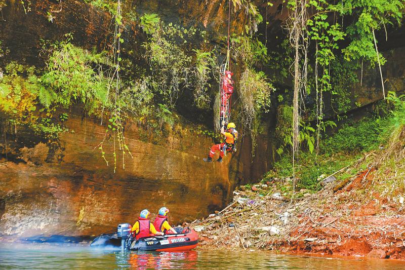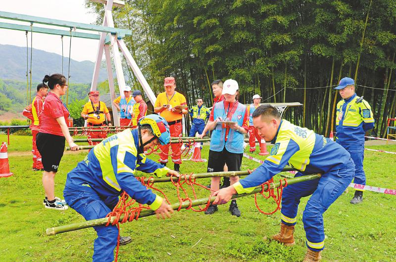 5月18日至19日,“联动-2025”第六届成渝地区双城经济圈青年应急志愿服务综合演练暨应急救援技能比武在泸州市纳溪区上马镇举行。四川省应急志愿服务总队、重庆市“山城雪豹”抢险救灾青年志愿者总队等共17支队伍300余名队员,围绕山地搜救、应急医疗救护、建筑物倒塌搜救和战勤保障等6个大类18个科目展开激烈角逐,并模拟灾害发生场景开展实战演练。 王超明 摄(C视觉)