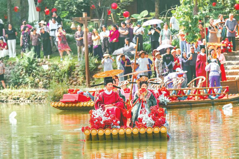 5月20日,“缘定邛崃·古风游船”“520”婚俗主题活动举行,吸引众多新人参与。张翔升 摄(C视觉)