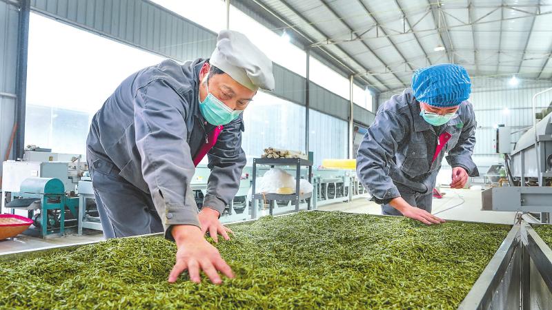 在四川秦巴鸿源茶业有限公司生产车间,公司负责人张家天在制作绿茶。张书浩 摄