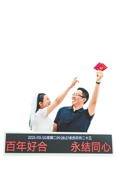 金牛区府河摄影公园婚姻登记处,新人手拿结婚证留念。邓显杰摄(C视觉)