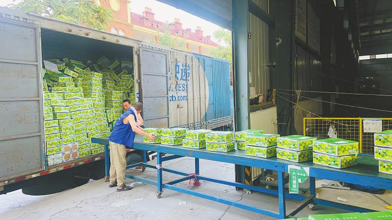 上万斤水果商品从沐川电商中心直播间走出。 受访者供图