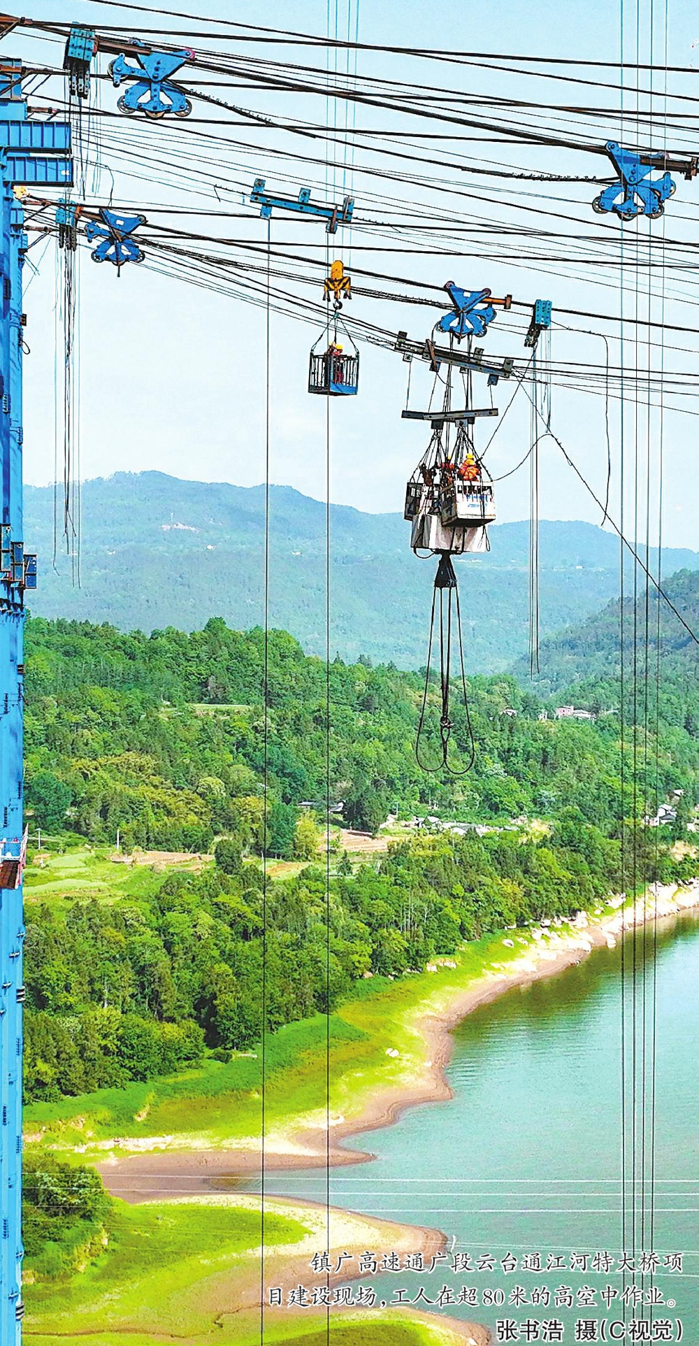 岳池输变电工人正在高空作业。岳池县委宣传部供图