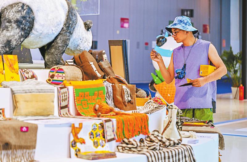 5月26日,市民在老挝馆体验精油、护手霜产品。 四川日报全媒体记者 李志强 摄