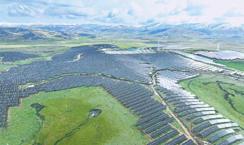 红原安曲一期250兆瓦光伏电站全景。