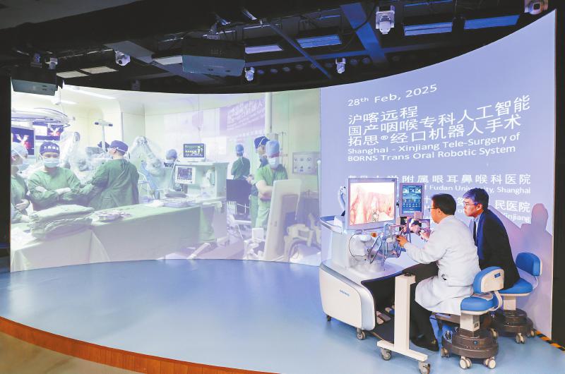 陶磊教授团队操控博恩思的AI+手术机器人系统,远程为5000公里外的患者成功完成手术。