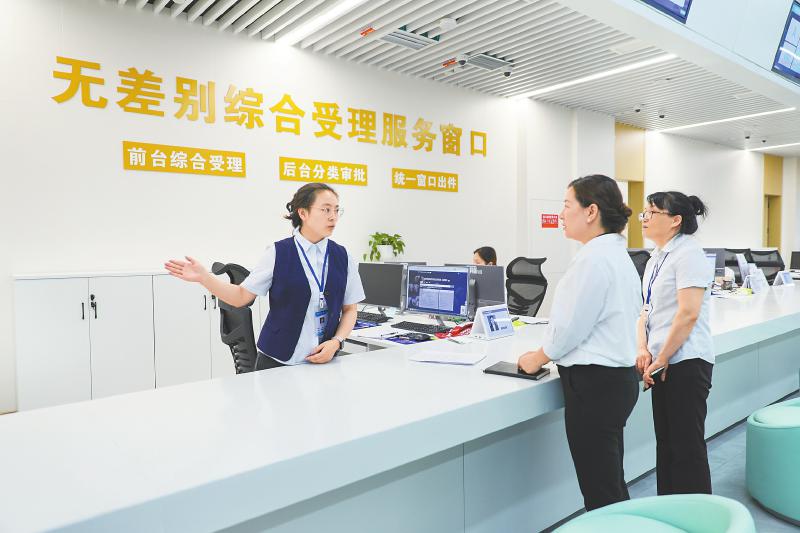 5月14日,泸州市泸县纪委监委干部到县政务服务中心开展作风监督检查。 吴威 摄