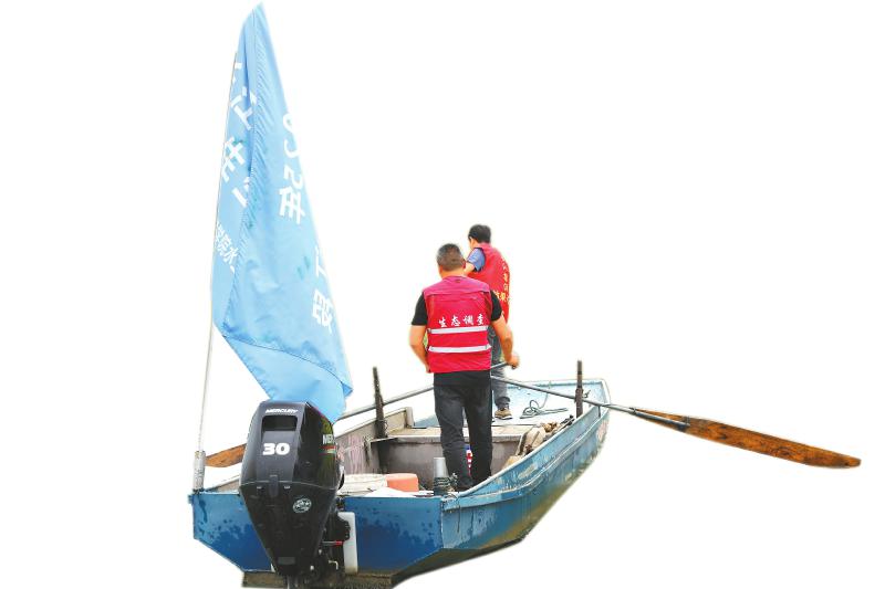 退捕渔民李庆余和陈淀明参与效果监测项目作业。四川日报全媒体记者 赵荣昌 摄