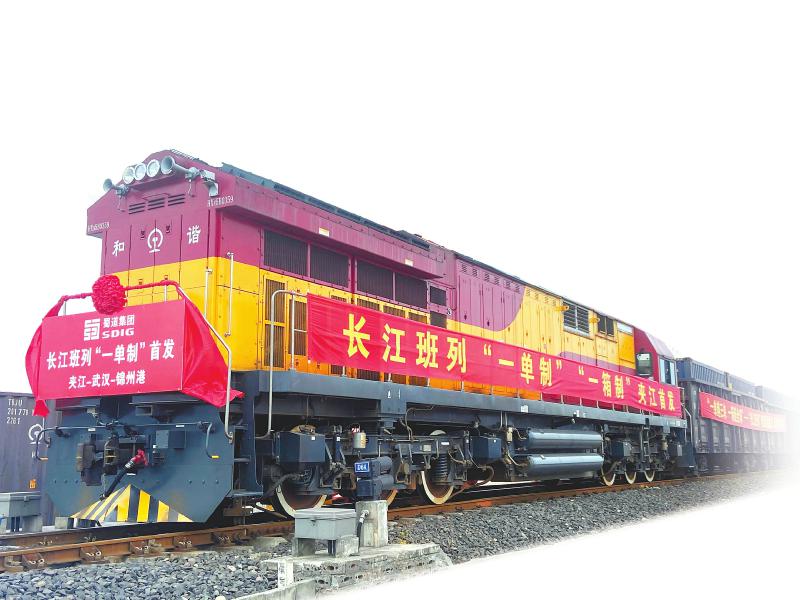 “长江班列”从乐山夹江站启程,标志着“长江班列”多式联运“一单制”通道正式落地,川货出川实现“一票直达、一箱到底”。蜀道集团供图(资料图片)
