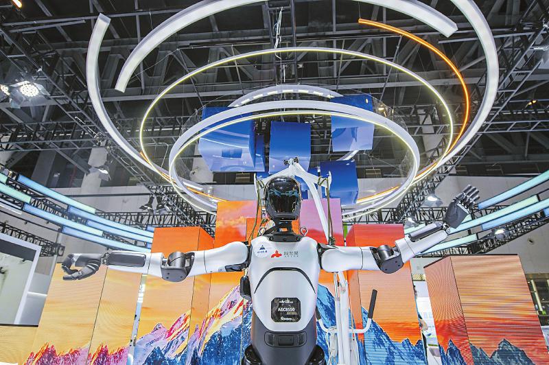 阿加犀人形机器人正在展示运动能力。四川日报全媒体记者何海洋摄