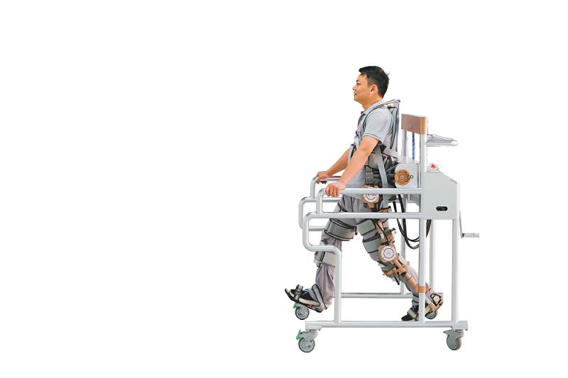 四川行走科技有限公司实验训练场内,工作人员正模拟康复医疗器械设备训练。四川日报全媒体记者 郝飞 摄
