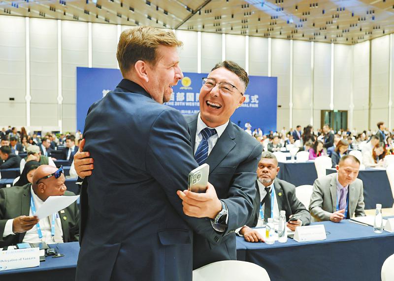 5月25日,西博会现场,两位曾打过交道的中外嘉宾喜相逢。