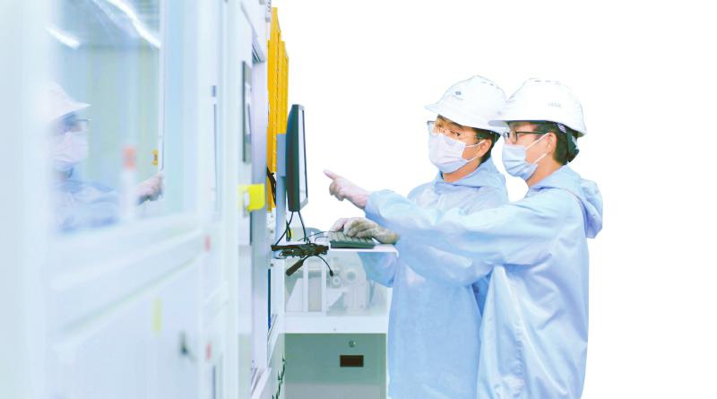 眉山琏升光伏科技有限公司电池生产车间内,工人正在忙生产。 丹棱县委宣传部供图
