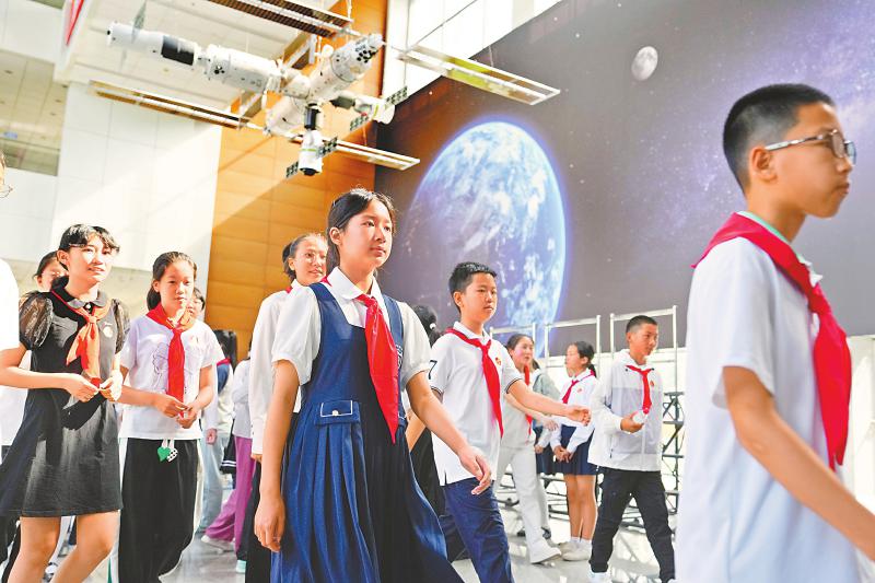 5月26日,约110名参加中国少年先锋队第九次全国代表大会的少先队员代表在北京中国航天员中心参加实践活动。 新华社记者 郑焕松 摄