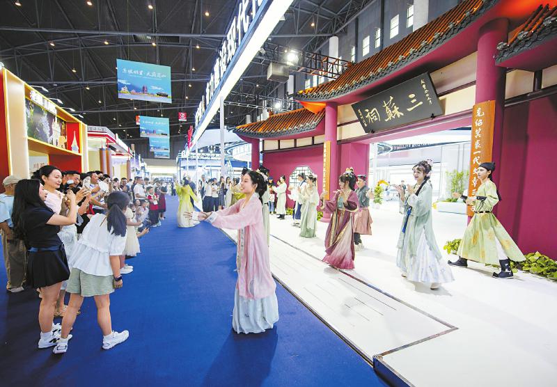 5月25日,西博会眉山馆中,演职人员与观众互动。