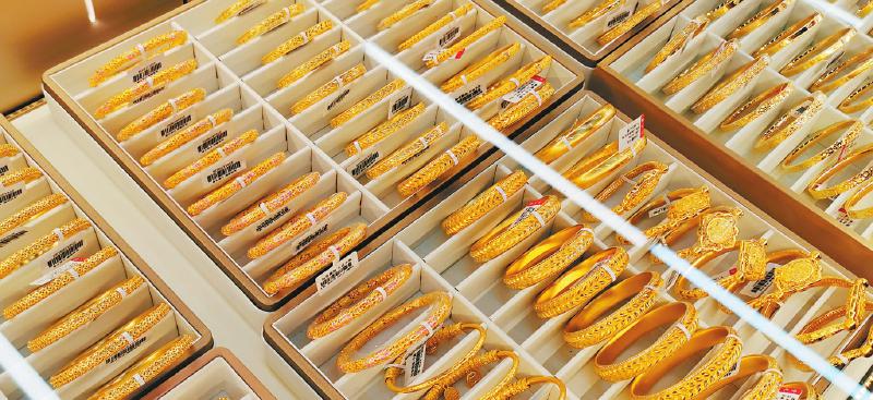 这是北京一家店铺售卖的“金包银”手镯。 新华社记者 任军 摄