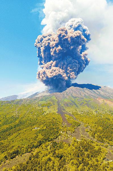 6月2日,意大利埃特纳火山喷出浓烟。新华社/美联