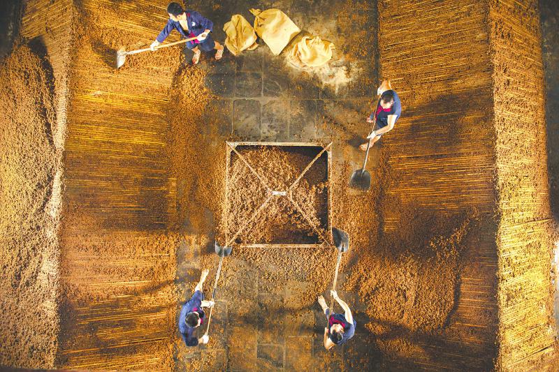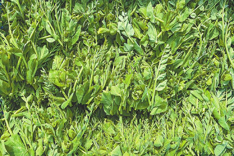 村民们采摘豌豆尖并掐掉开出的白色花朵。