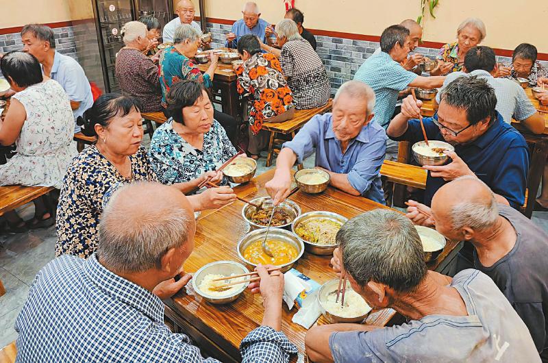 大英县象山镇凤阳村长寿食堂内,老年人在用餐。 大英县民政局供图