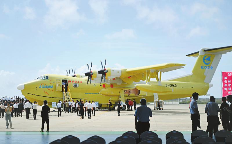 6月11日,在珠海中航通飞华南飞机工业有限公司,现场展示的批量生产的首架AG600飞机。