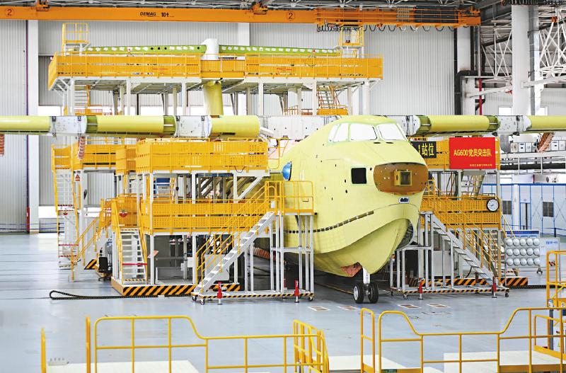 6月11日在珠海中航通飞华南飞机工业有限公司拍摄的AG600总装线。
