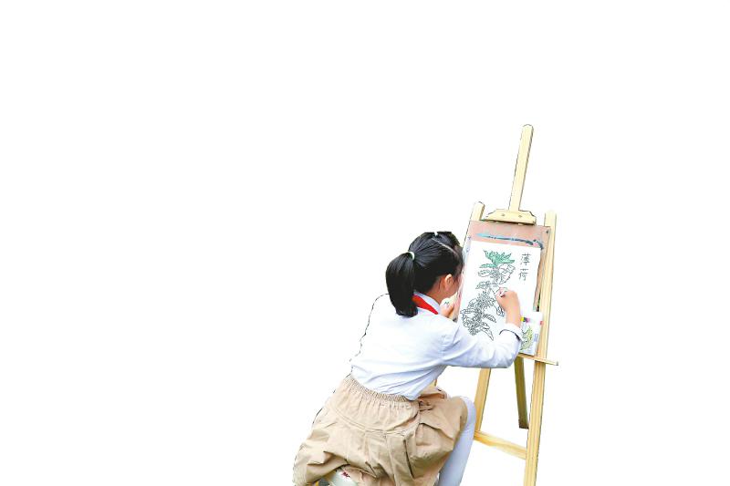 广安市广安区富源小学百草园,学生正在描绘中草药。廖小兵 摄(C视觉)