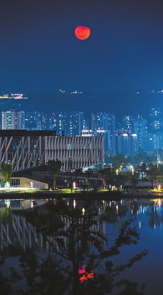 6月11日晚,本年度“最低满月”亮相,与现代城市建筑交相呼应,吸引不少成都市民打卡拍照。 四川日报全媒体记者 欧阳杰 摄