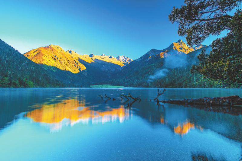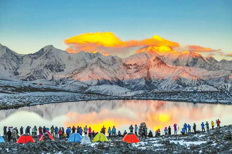 康定冷嘎措“日照金山”景观。