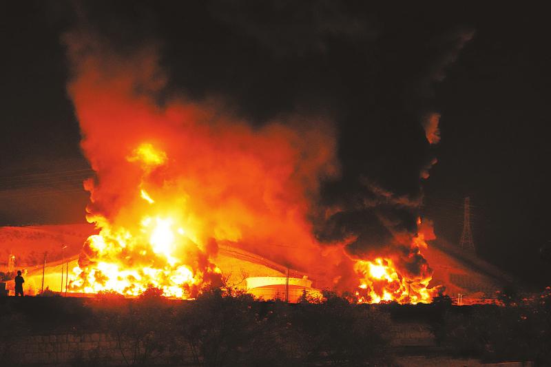 6月15日,伊朗首都德黑兰附近遭以色列袭击起火的储油设施。 新华社/美联