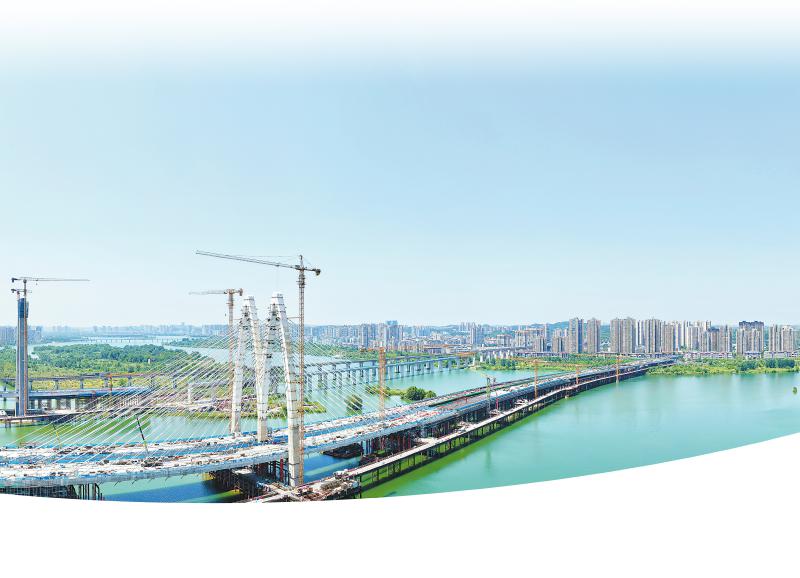 6月15日,遂宁市内首座斜拉大桥——涪江六桥建设正加速推进。另一侧,成达万高铁遂宁涪江特大桥也正同步建设。遂宁观察 刘作鹏 摄