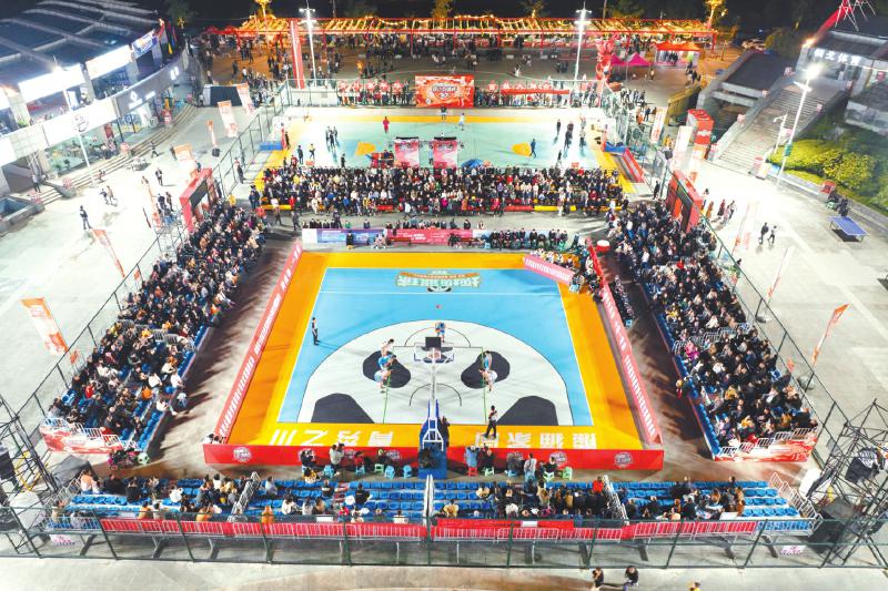 青川县城篮球公园里举行的“坝坝篮球”。 王治 摄