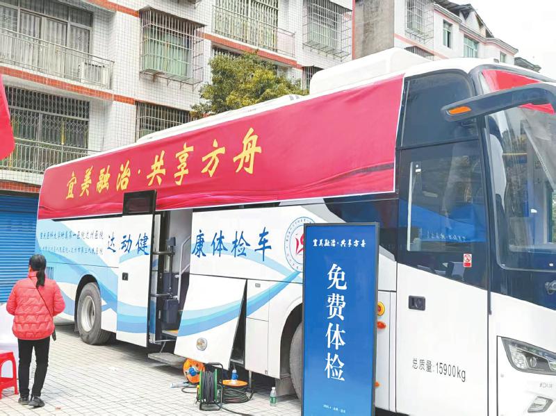 健康体检车为居民提供免费体检服务。