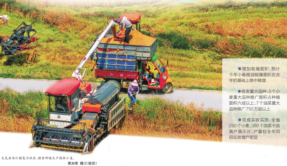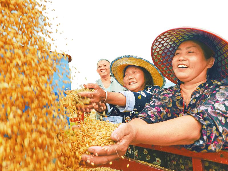 达州市通川区北山镇丰登村麦田里,村民感受丰收的喜悦。邓良奎 摄(C视觉)