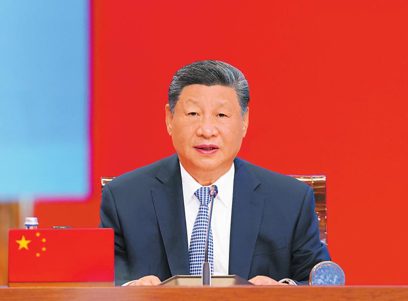 当地时间六月十七日下午,第二届中国-中亚峰会在阿斯塔纳独立宫举行。这是习近平发表题为《弘扬“中国-中亚精神”推动地区合作高质量发展》的主旨发言。新华社记者 黄敬文 摄